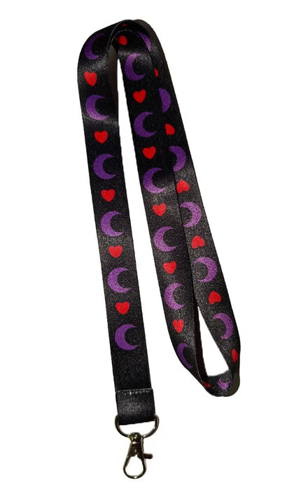 This Black, Red and Purple Lanyard features the cutest little hearts and crescent moons, perfect for any spooky witch or ghoul! The hook allows you to attach most styles of Card, ID holders or keys.