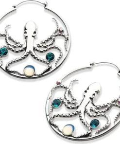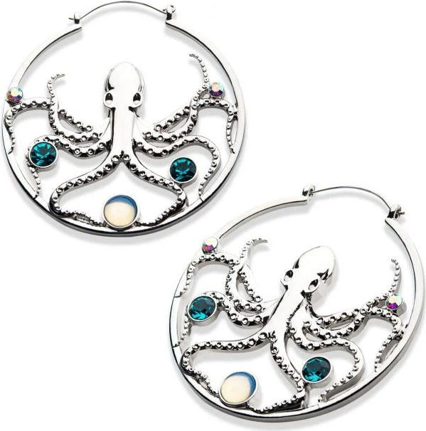 Rule the deep seaย with these Blue Zircon & White Opalite Silver Plated Octopus Plug Hoops.
