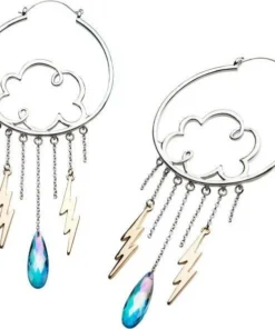 These badass Rainy Day plug-friendly hoops have surgical steel posts and not only have an awesomely detailedย hangingย Raincloud design, they’re also decorated with a dangling lightning bolts and a raindrop!ย All hail these original plug hoop earrings…perfect for everyday wear- if you dare. Which we know you will!