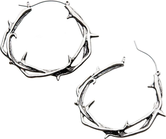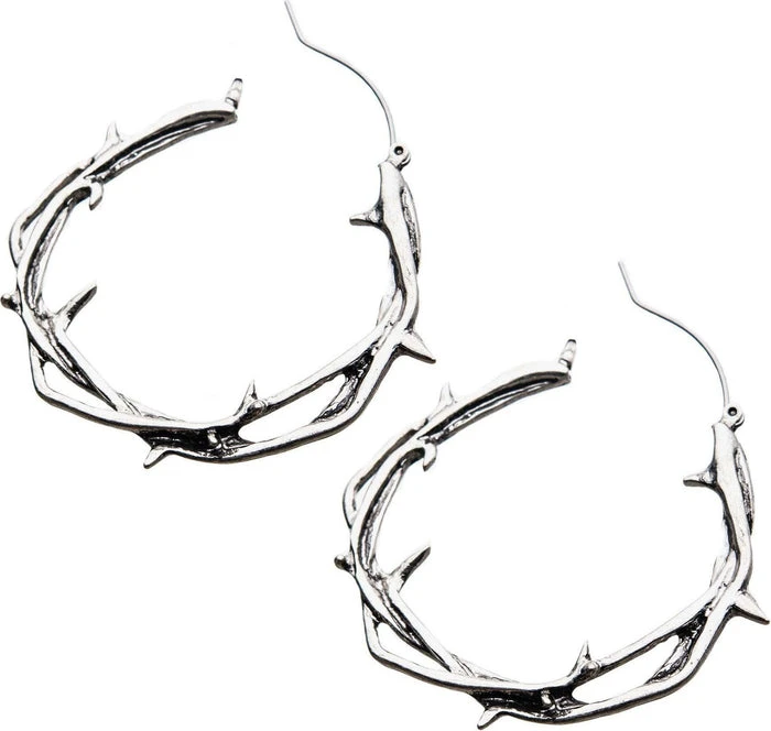20g Surgical Steel Twisted Thorn plug-friendly hoop earrings. These plug hoops are designed to fit comfortably in any flesh tunnel style of body jewellery worn in the earlobe, and they can be worn as a normal earrings too!