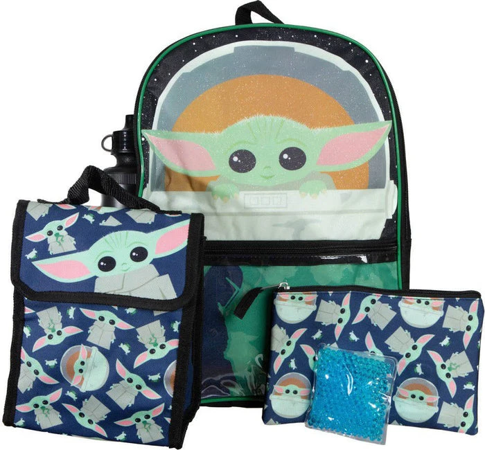 This Star Wars: The Mandalorian The Child 5-Piece Backpack Set includes:
