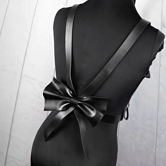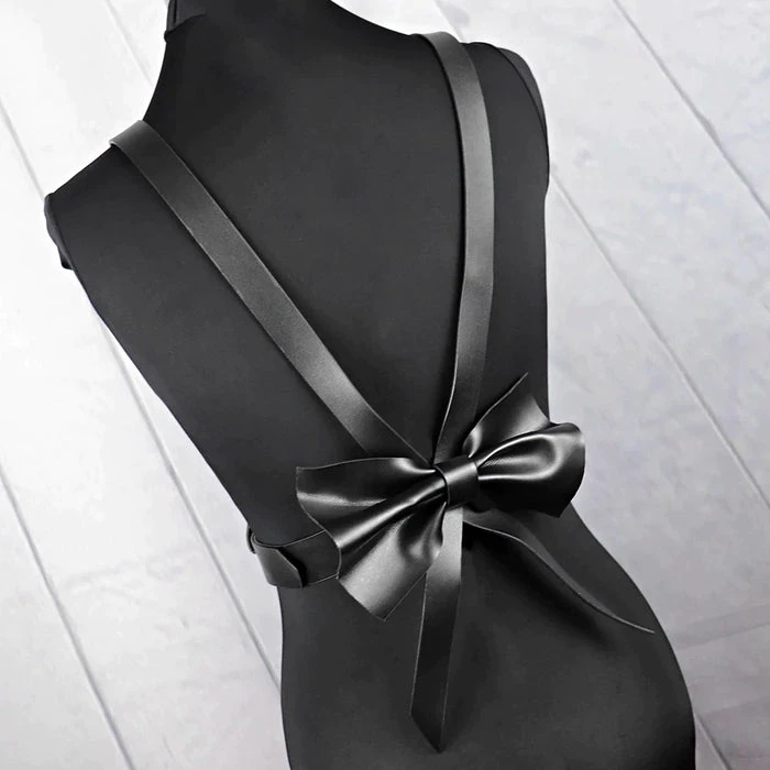 Let’s wreak havoc! This stunning black faux leather harness is perfect for adding that little bit of extra-ness to your favourite outfits, especially with the super cute bow detail on the back! Perfect for all outfits and occasions!ย