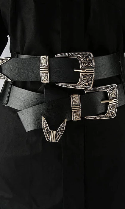 Adorn your dark attire with this ornate Double Buckle Belt!