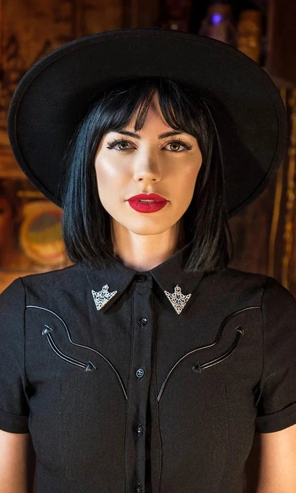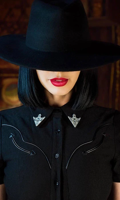 Walk the wild frontier in this Classic Western Hat.ย This classic piece is a must have inย your wardrobe. Features includeย a deep black colour and a classic look that is iconic to wild Western movies. Live out your gothic western fantasies with this hat!ย