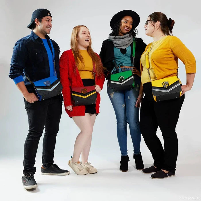 Soar to the top of the class ranks at Hogwarts School of Witchcraft and Wizardry in spellbinding style with this Loungefly Harry Potter Ravenclaw Chain Strap Crossbody Bag. This captivating crossbody bag incorporates the colors of the Ravenclaw House in a chevron pattern. The Ravenclaw crest is on a metal rivet, and the eagle logo appears again as a debossed all-over-print on top of a black base. The accordion-style sides reveal accents of strands of gold, and a gold chain strap tops off the look. Itβs the perfect accessory for attending a potions class or an extra lecture by Professor Minerva McGonagallβor for turning everyday outings into enchanting moments!