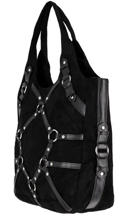 Are you looking for a gothic-style handbag that will be the perfect complement to your dark, mysterious style? Then the Harness Tote Bagย is just for you!ย Pair this bag with a simple black dress orย a comfortable hoodie for a cute outfit.ย