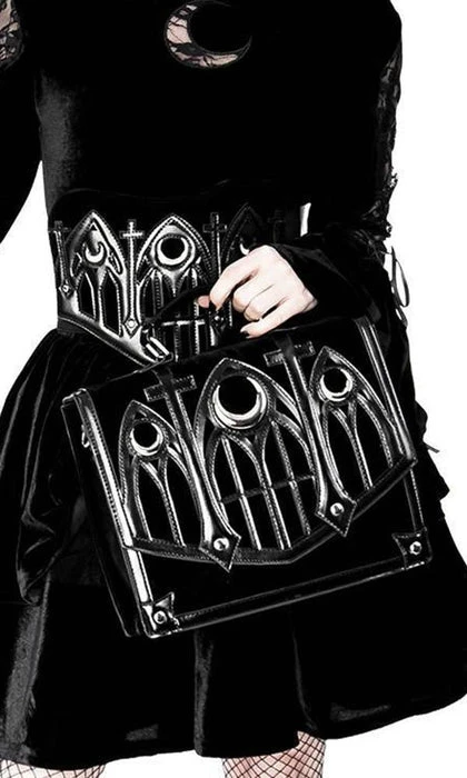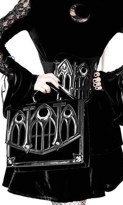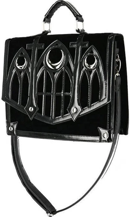 Elegant, gothic, cathedral-patterned briefcase style handbag.