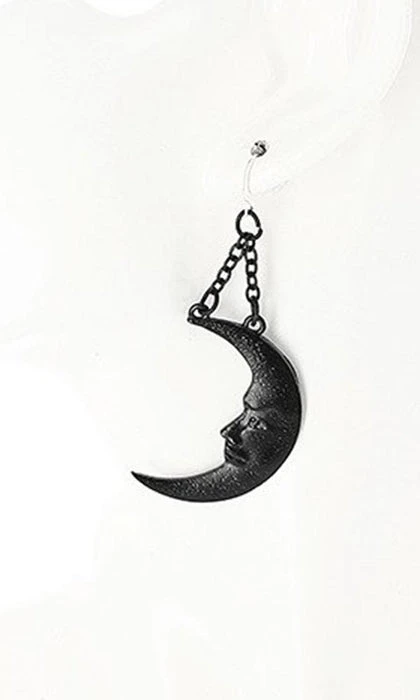 Black earrings, (one is the sun, the second one moon) on chains. Those human faces though – creepy or not? Both, or neither, but we can all agree they are uniquely medieval artistic-y!ย Nickel free 925 silverย pins/hoops so it’s okay for your skin.