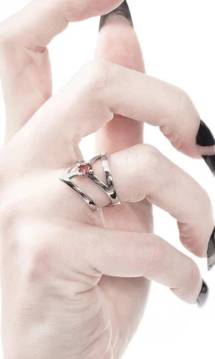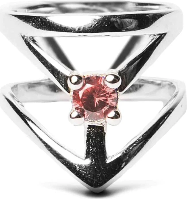 A magical Stainless Steel Ring with a Mirror Polish finish, decorated with a mystical deep Rose, Rhodolite-colour gemstone.