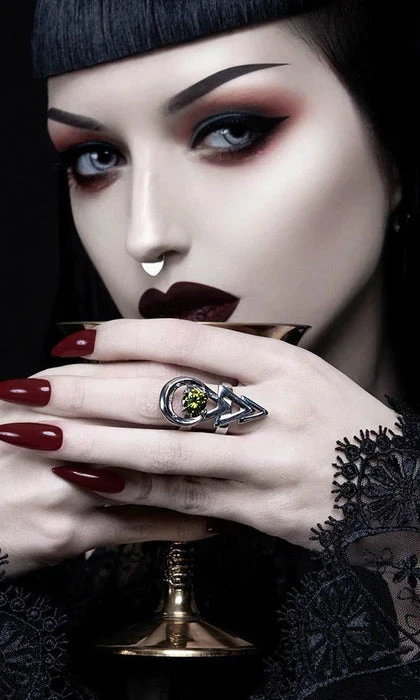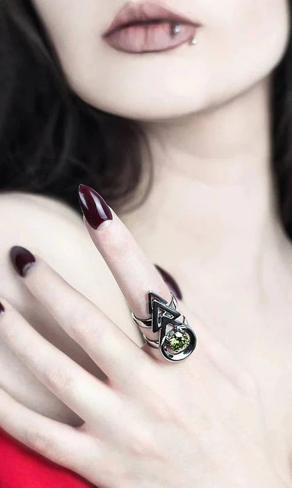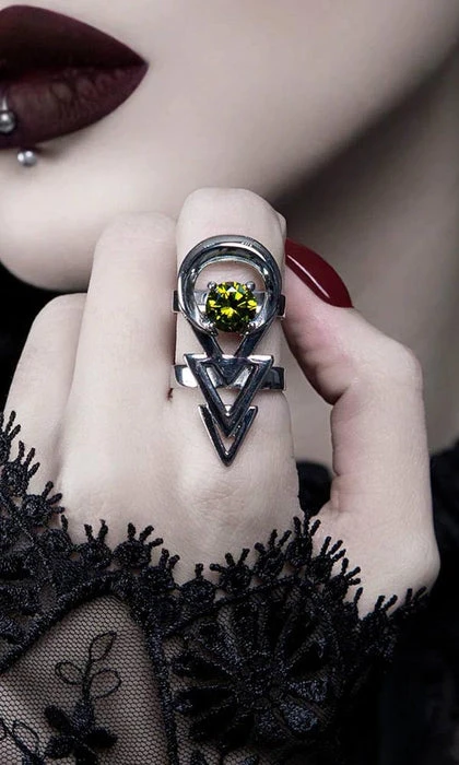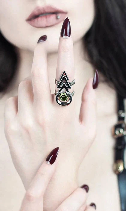 A magical Stainless Steel Ring with a Mirror Polish finish, decorated with mystical Pale Emerald Green Gemstone