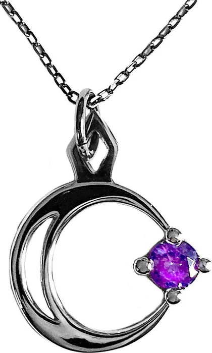 A beautiful Stainless Steel pendant with a Mirror Polish finish, adorned with a magical Violet gemstone, hanging on a Silver-plated chain.