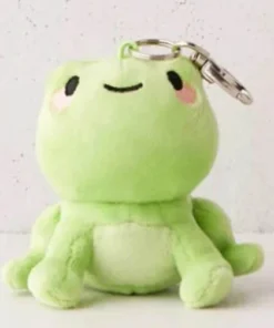 Hop around town with this little buddy in tow. Ultra-cute frog-shaped plushie featuring a clip keychain for attaching to your bag, keys or wallet.