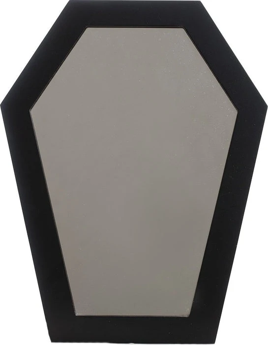 You could call us Coffin Enthusiasts, and if you are, too (come on, who isn’t?), then this Coffin Mirror will have you picturing yourself in a ghastly new light! Featuring a black, coffin-shaped frame, this glass mirror is the perfect size for hanging in your bedroom, bathroom or any space that could use a little more of the macabre (which is basically everywhere.)ย Attached sawtooth hanger makes it a cinch to hang, so you can see yourself in your final resting place whenever you please!