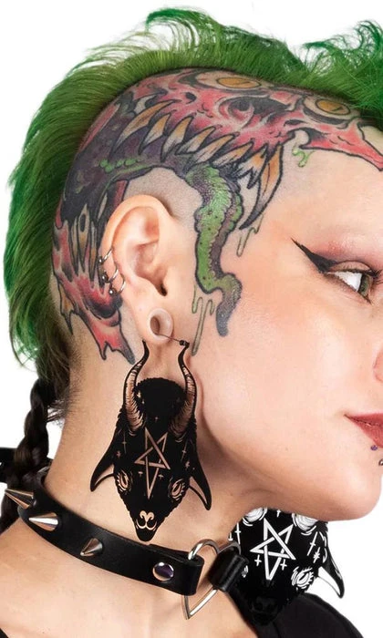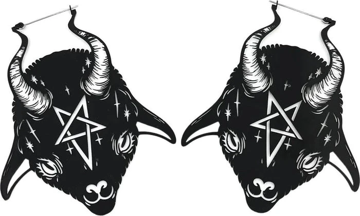 These baby goat earrings are inspired by the devil tarot, embedded with a pentagram on the Baphomet’s forehead, these earrings are for the strange and unusual. Wiccans unite!